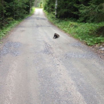 Edellisenä iltapäivänä näin kanahaukan popsimassa jotain raatoa viidenkymmenen metrin päässä, kunnes se äkkäsi häiritsijän, minut, ja leväytti siipensä ja kohosi korkeuksiin. Tavallisimmin olen nähnyt mökkitiellä hiirihaukkoja. Mustarastaat viihtyvät oikein hyvin mökkimme liepeillä, niiden kauniiseen lauleluun jää koukkuun. Metsäkanalinnuista olen nähnyt teeren, metson ja pyyn tien laitamilla, ilmeisesti noukkimassa kiviä. Syksyn tullen sammakot, lepakot ja pöllöt ovat takuuvarmasti ihailtavana.